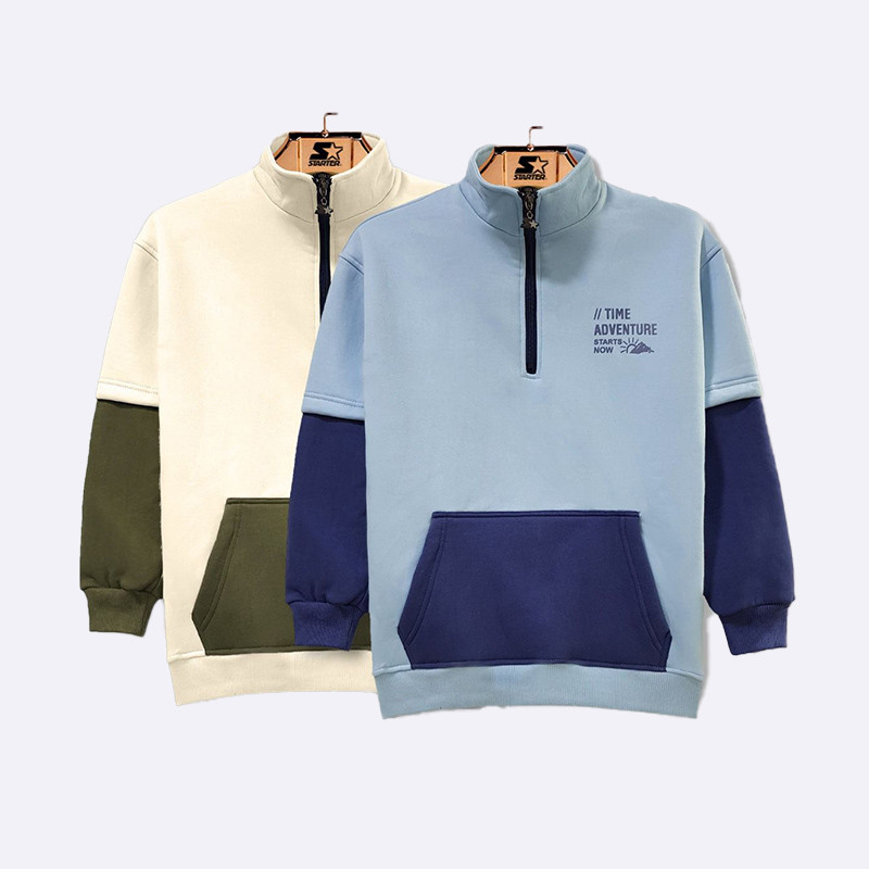 سويت شيرت ولادي بتصميم عصري مع سحاب نصفي وجيب أمامي عملي، مريح ومناسب للحركة اليومية. مثالي للمدرسة والمشاوير، يمنح الطفل دفئاً خفيفاً وإطلالة كاجوال أنيقة، وسهل التنسيق مع البنطال الرياضي أو الجينز.