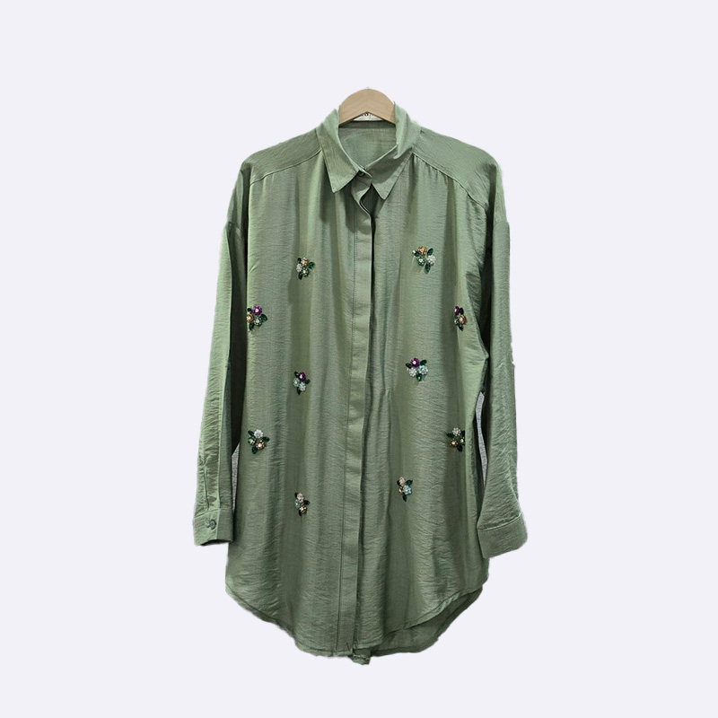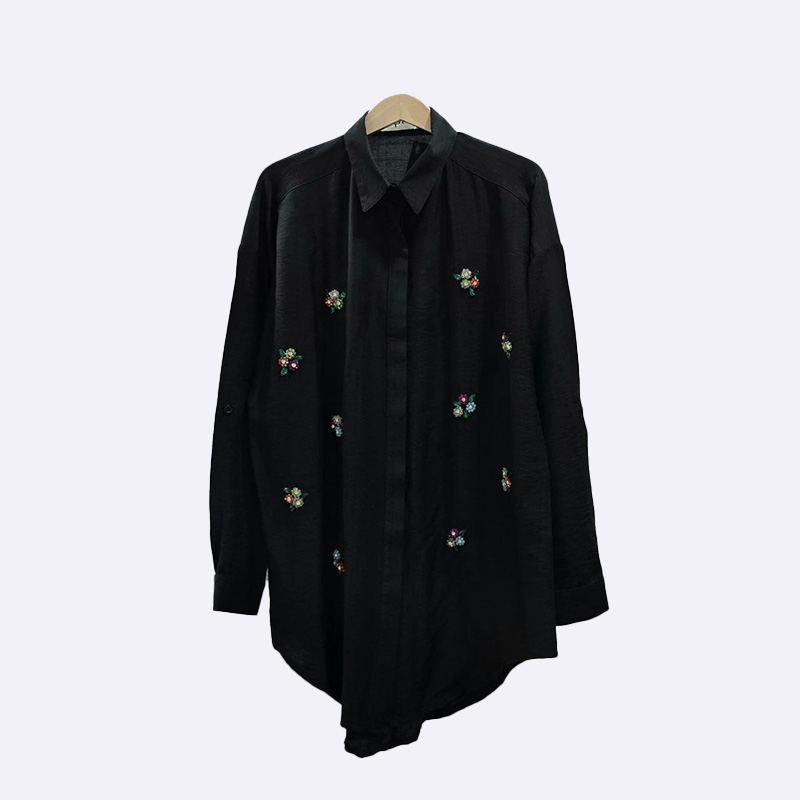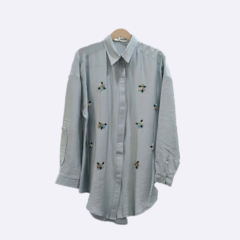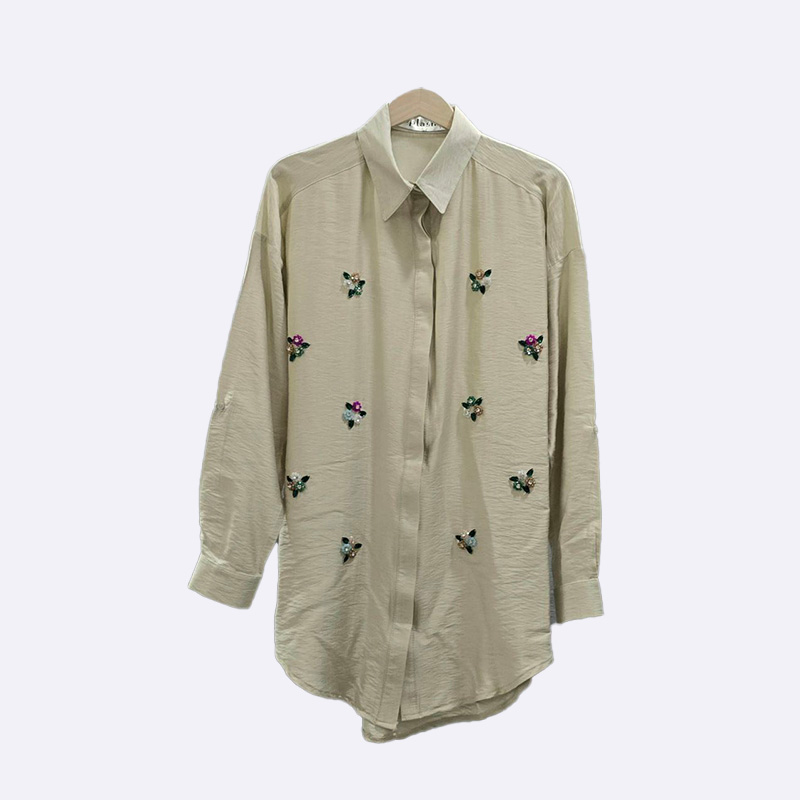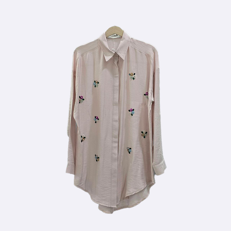 قميص نسائي أنيق مصنوع من قماش اللينن، يتميز بتصميمه الكلاسيكي مع ياقة وأزرار أمامية. يزين القميص تطريز رقيق على شكل أزهار مبهجة. هذا القميص مثالي للإطلالات الصيفية الأنيقة والمريحة. يتوفر بألوان: البيج، الزيتي، الأسود، السماوي، والزهري الفاتح.