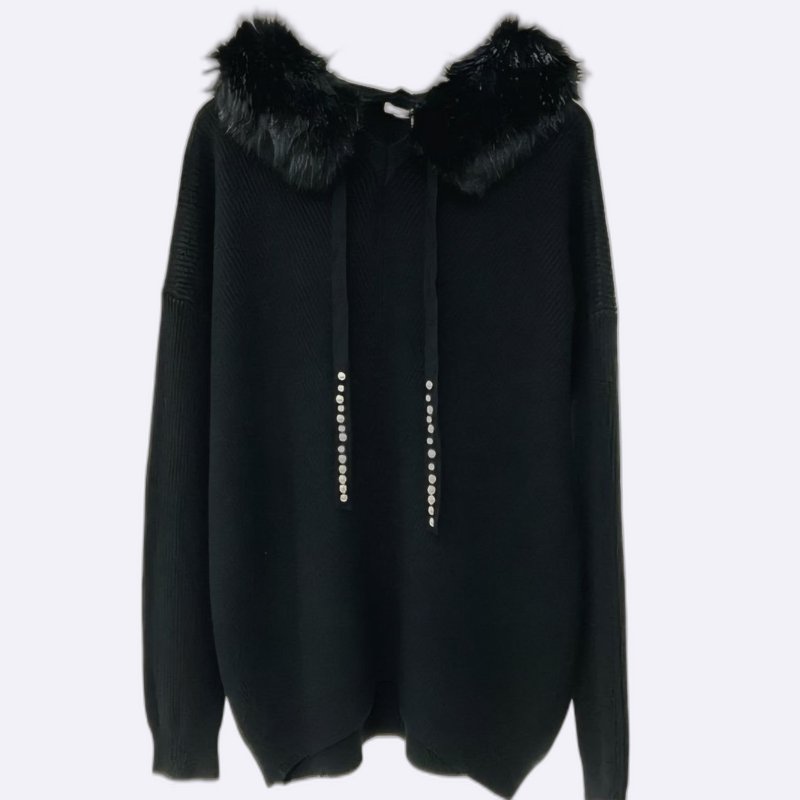 Furry Hooded Knit Sweater