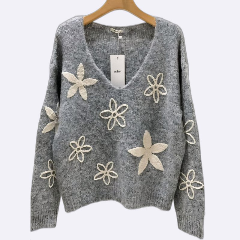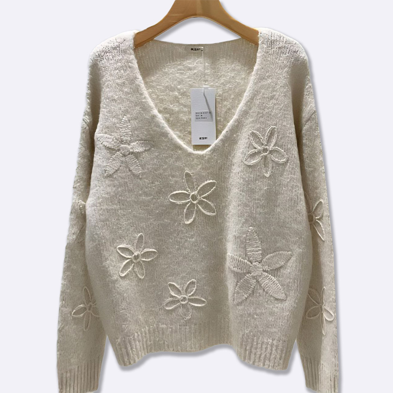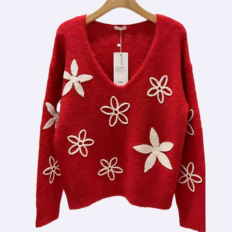 تألقي بأسلوب فريد مع هذه الكنزة الأنيقة المطرزة بالزهور. تصميم عصري بفتحة رقبة على شكل حرف V يضفي لمسة أنثوية جذابة.