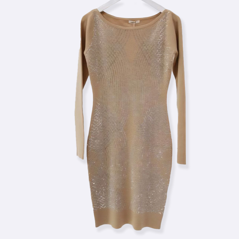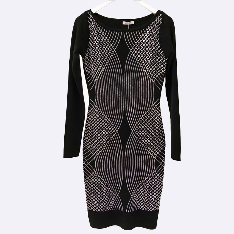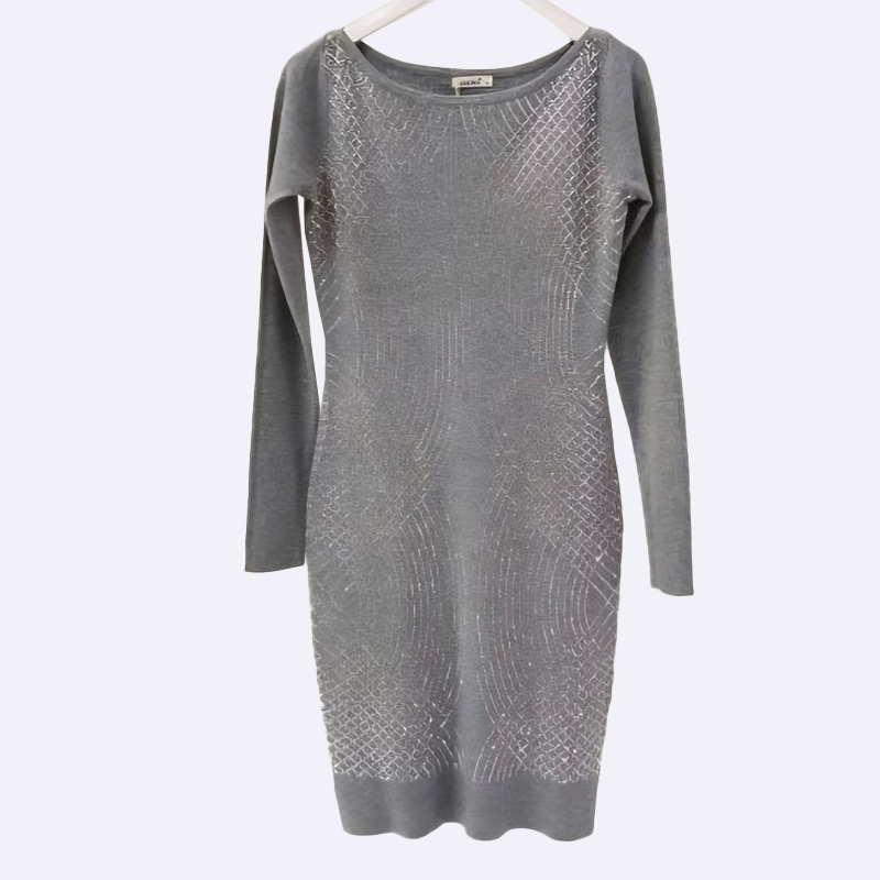 فستان قصير بأكمام طويلة بتصميم متلألئ