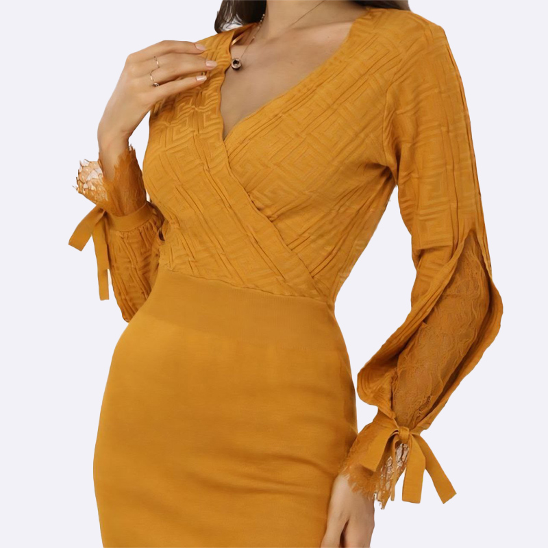 فستان لف بأكمام طويلة وحواف دانتيل