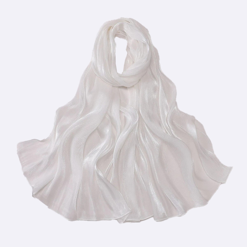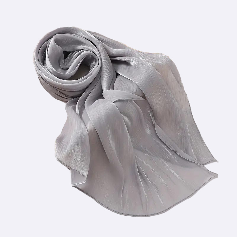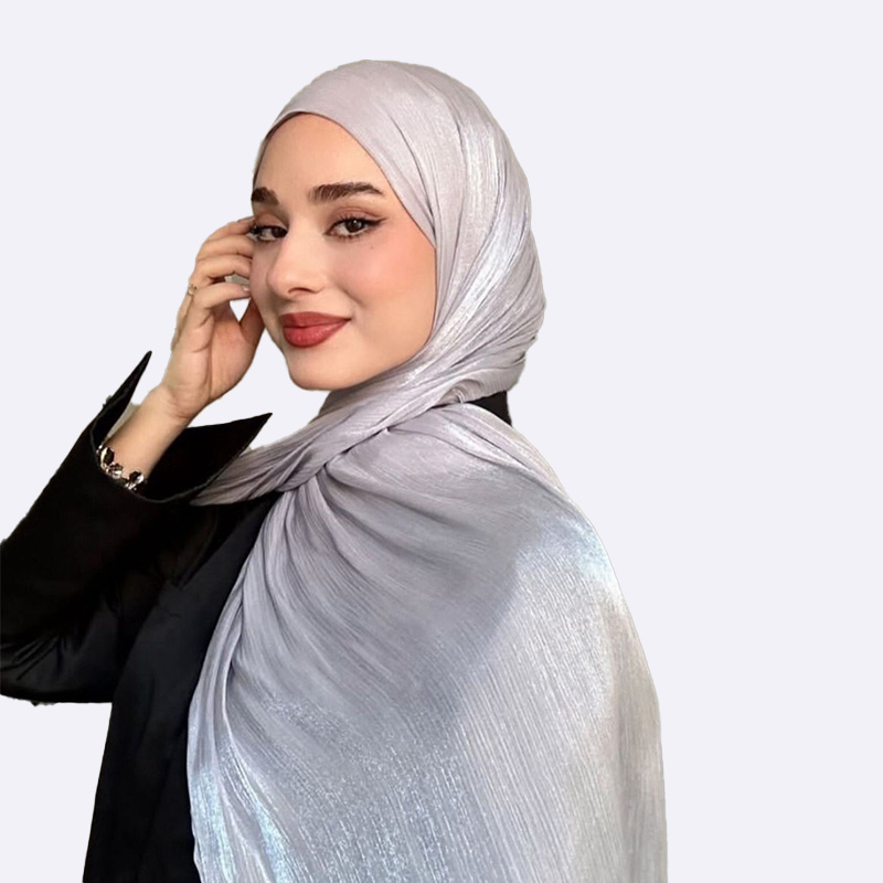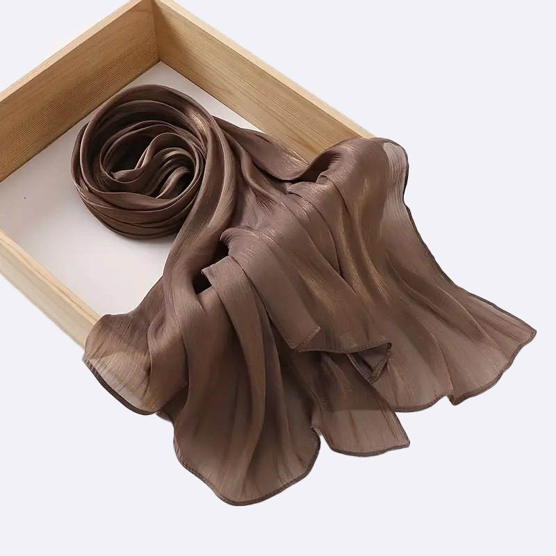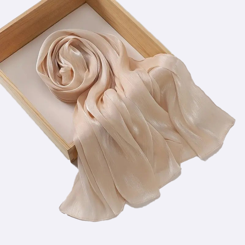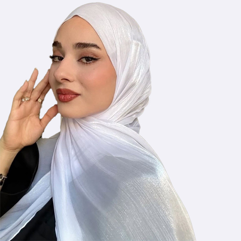 شال نسائي أنيق ولامع من قماش الأورجانزا، يتميز بملمس ناعم وخفيف وقليل التجعد، ومناسب للإطلالات الرسمية والاحتفالية.