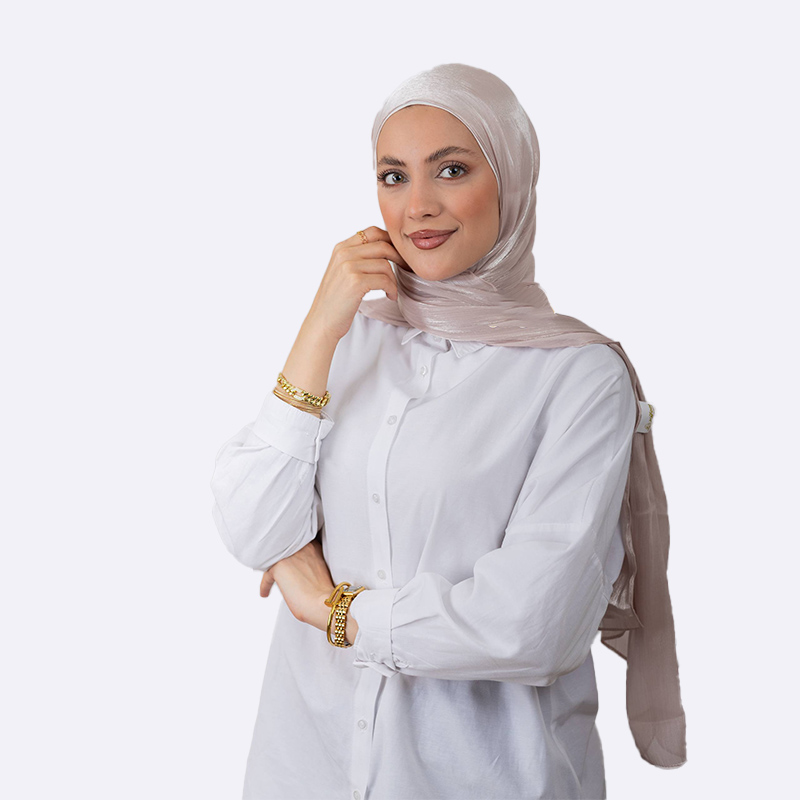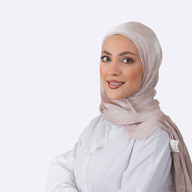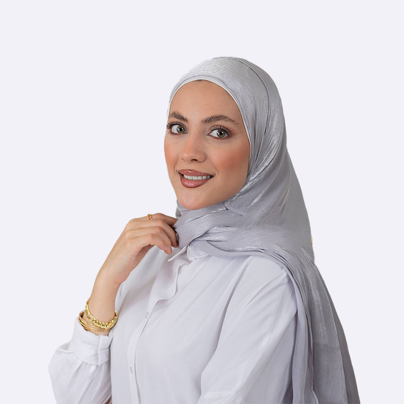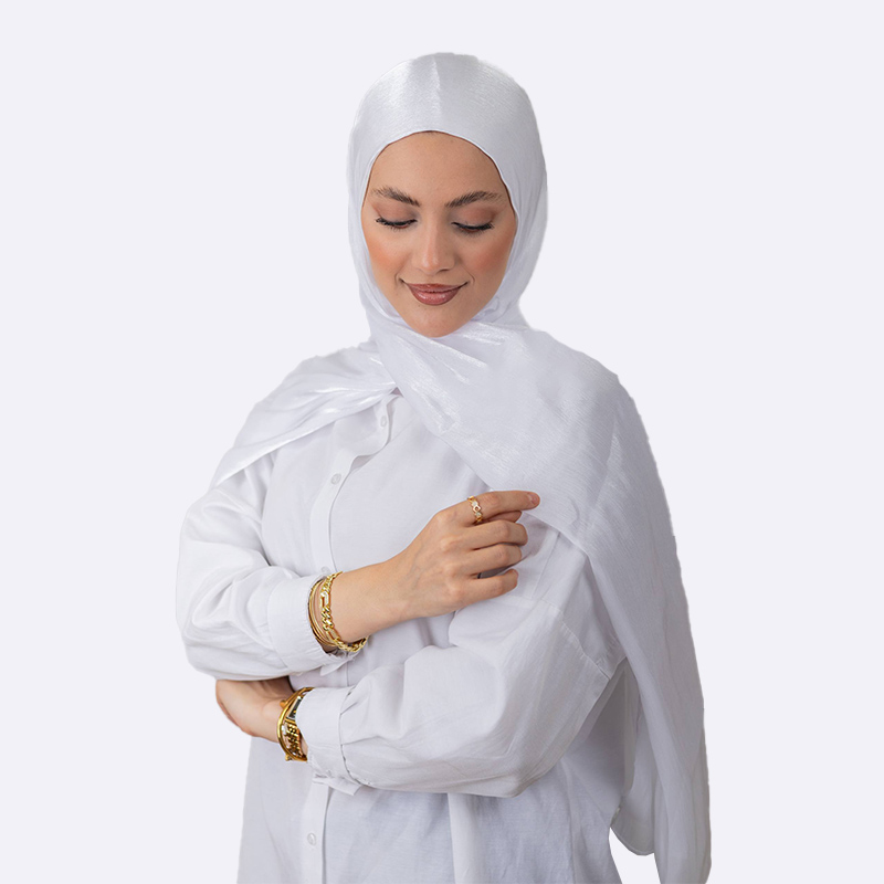 شال أنيق مصنوع من قماش الأورجانزا أو نسيج لامع مشابه، يتميز بكسرات (طيات) ناعمة لإضافة حجم وملمس مميز، ومناسب للمناسبات الخاصة.