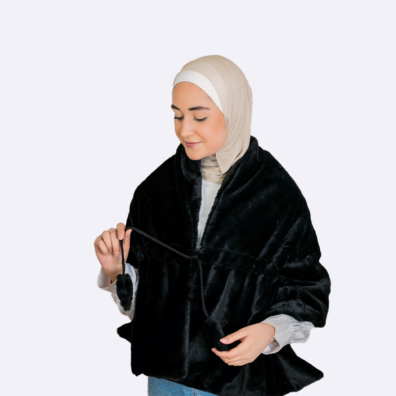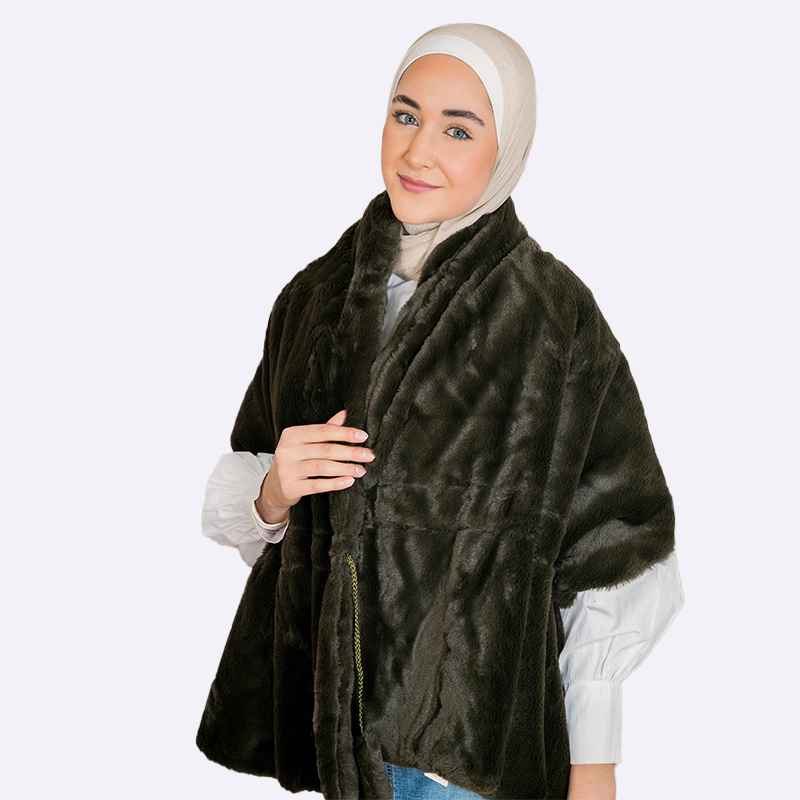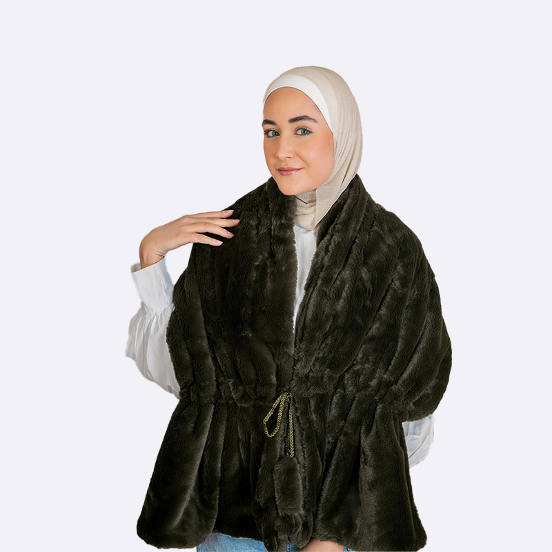 شال أو كاب دافئ وناعم مصنوع من الفرو الصناعي بقصة واسعة، يمكن ارتداؤه حول الكتفين مثل الجاكيت ويتميز ببطانة أو طبقة مزدوجة.