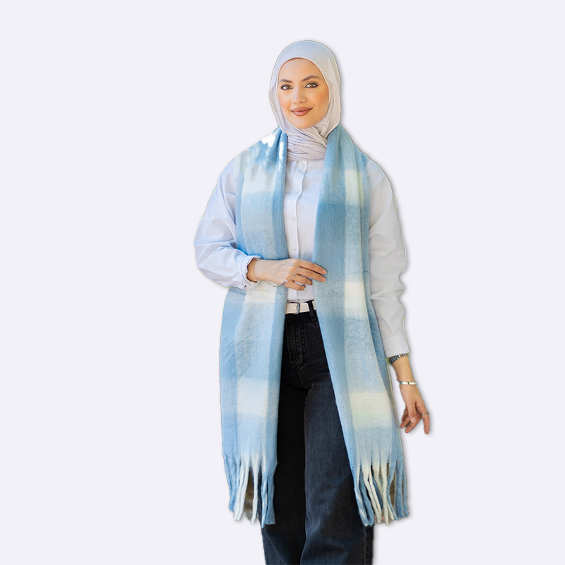 شال شي نور العصري بتصميم مربعات أنيق وأطراف الشراريب الطويلة، يمنحك مظهراً دافئاً وراقيًا. مناسب للإطلالات اليومية والشتوية، بخامة ناعمة مريحة ووزن خفيف مع ثبات ممتاز أثناء الارتداء.