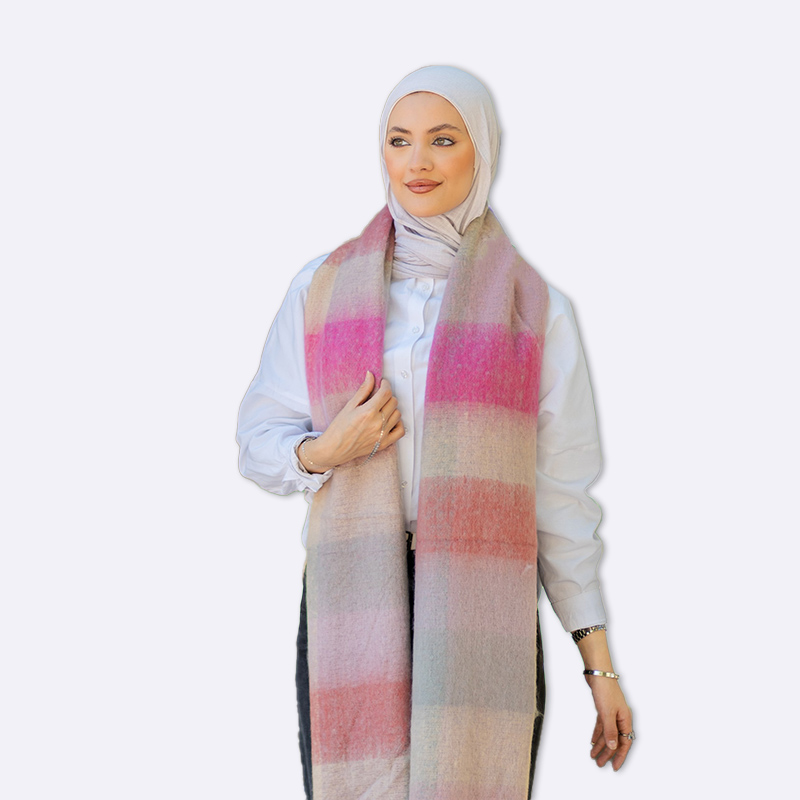 شال شي نور العصري بتصميم مربعات أنيق وأطراف الشراريب الطويلة، يمنحك مظهراً دافئاً وراقيًا. مناسب للإطلالات اليومية والشتوية، بخامة ناعمة مريحة ووزن خفيف مع ثبات ممتاز أثناء الارتداء.