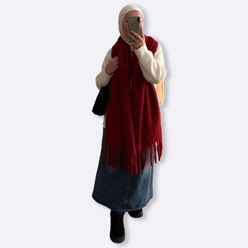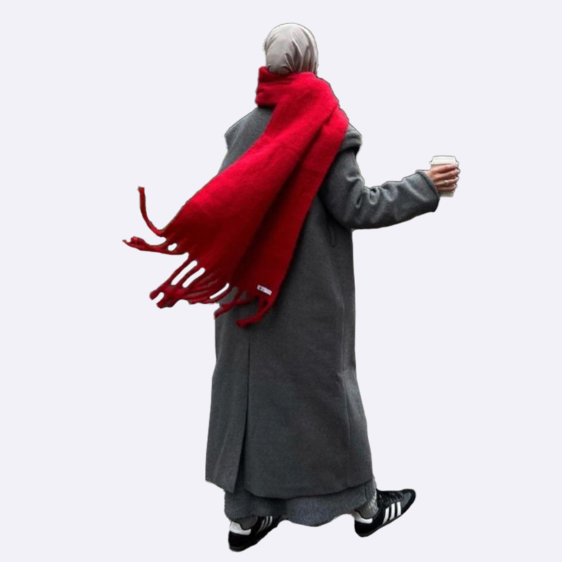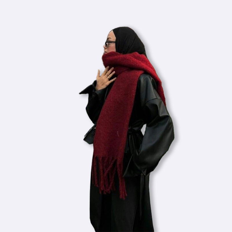 شال شتوي طويل وعريض بخامة ناعمة ودافئة، يتميّز بتصميم انسيابي ولون غنيّ يضيف لمسة فخمة لإطلالتك اليومية. مثالي للأيام الباردة ويمكن تنسيقه بعدة طرق ليمنحك دفئًا وأناقة في الوقت نفسه.