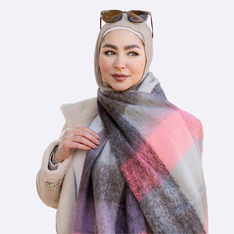 أضيفي لمسة من الأناقة إلى مظهرك مع هذا الوشاح بنقشة مربعات الباستيل. تصميم عصري ومريح يجعله مثاليًا لأيام الشتاء الباردة.