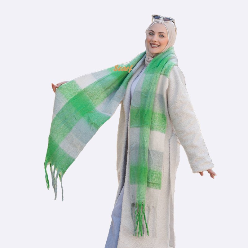 أضف لمسة من الأناقة إلى مظهرك مع هذا الوشاح الكاروهات الأخضر الجذاب. تصميم عصري ومريح يجعله إضافة مثالية لخزانة ملابسك الشتوية.