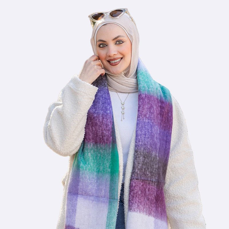 أضف لمسة من الأناقة والدفء إلى إطلالتك مع هذا الوشاح الكاروهات الناعم. تصميم عصري يمنحك مظهراً جذاباً في فصل الشتاء.