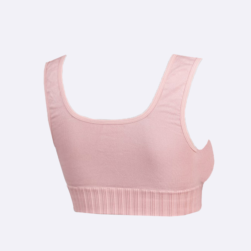 حمالة صدر نسائية مريحة وداعمة، بتصميم بدون درزات ولون زهري فاتح، مثالية للاستخدام اليومي أو للتمارين الخفيفة.