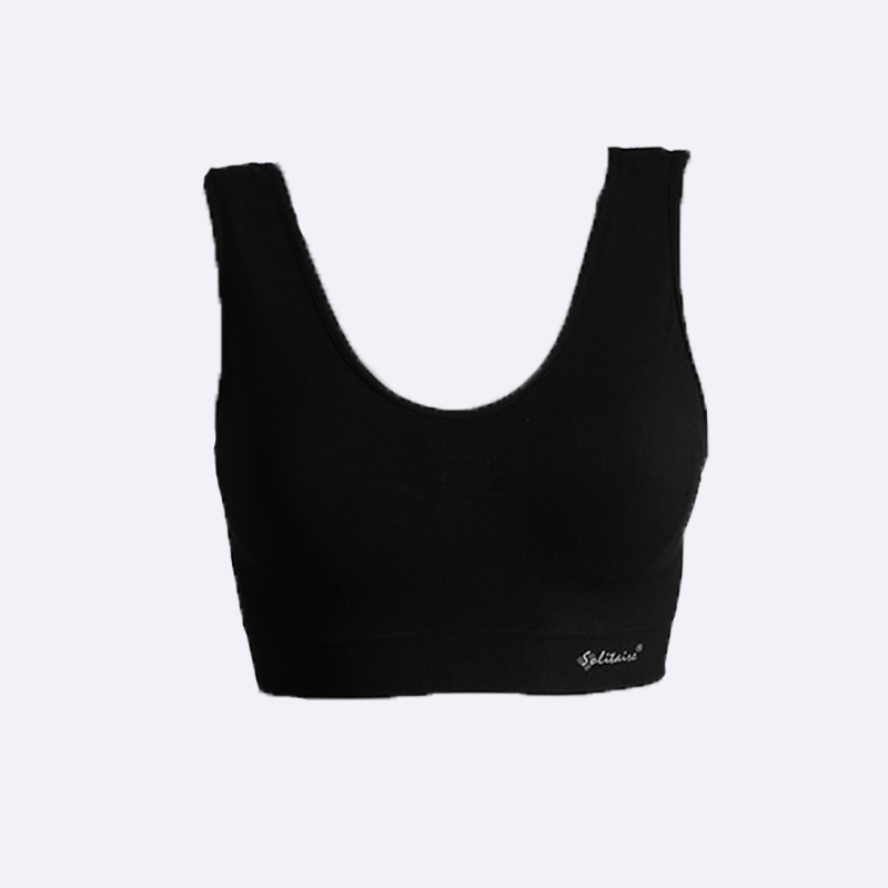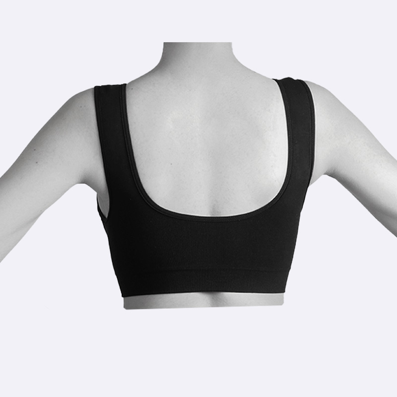 حمالة صدر نسائية رياضية أو يومية بلون أسود كلاسيكي، بتصميم واسع ومريح بدون حمالات رفيعة، مثالية للتمارين أو كملابس داخلية داعمة ومريحة