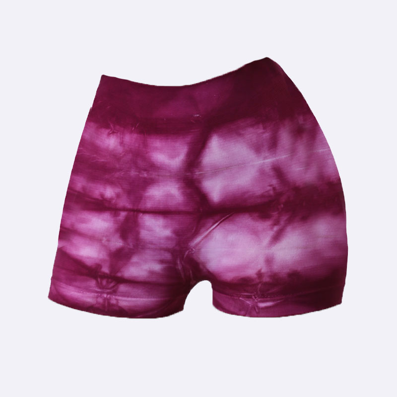 شورت داخلي نسائي بلون فوشيا أو توتي، يتميز بنقشة صبغ الأقمشة (تاي داي) العصرية والمموجة، وهو بتصميم مريح وبدون درزات، مثالي للراحة أو الارتداء تحت الملابس.