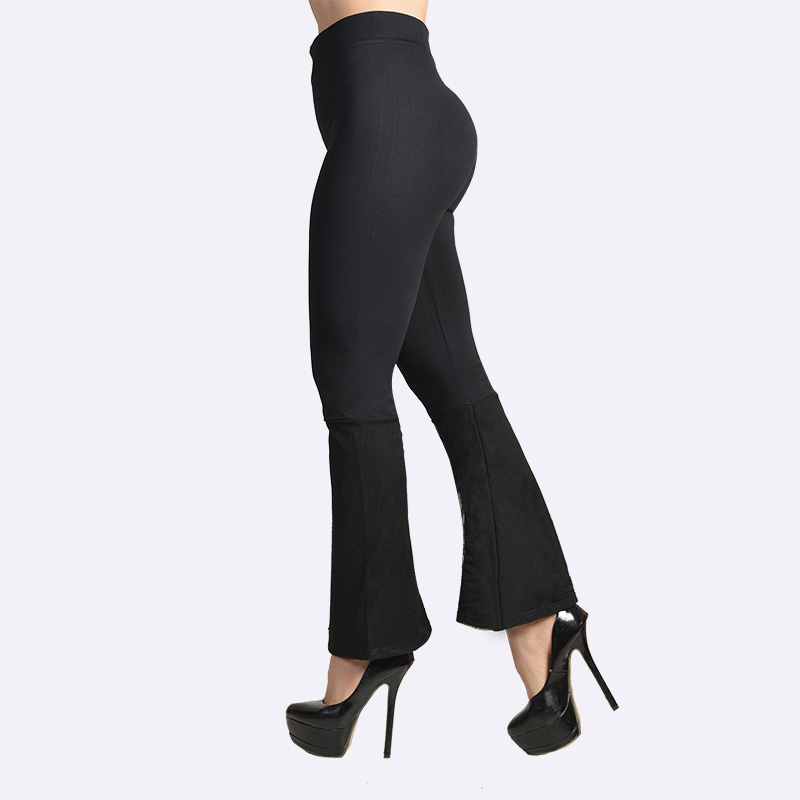 ليقنز أسود بخصر عالٍ وقصة ضيقة من الأعلى تتسع عند الكاحل، مناسب للارتداء اليومي أو لتمارين اليوغا واللياقة.