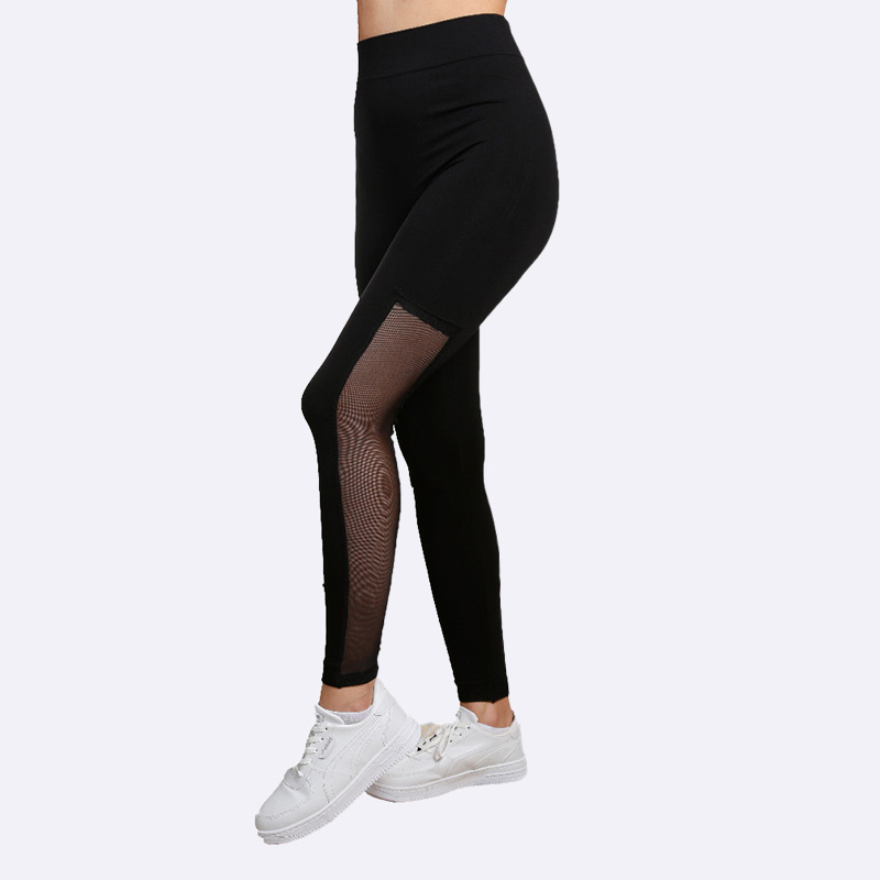 ليقنز رياضي أسود طويل بخصر عالٍ، يتميز بفتحات شبكية شفافة ممتدة على طول الجزء الخلفي من الساق، مما يجعله مثالياً للتمارين.