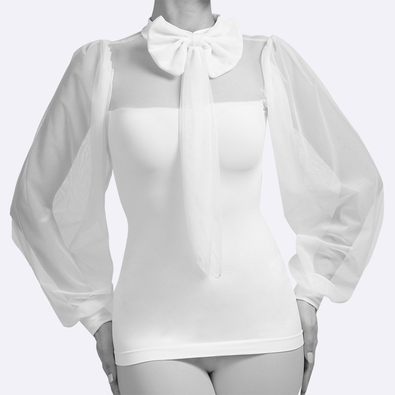 Puffy Sleeve Sheer Blouse with Pussybow Tie