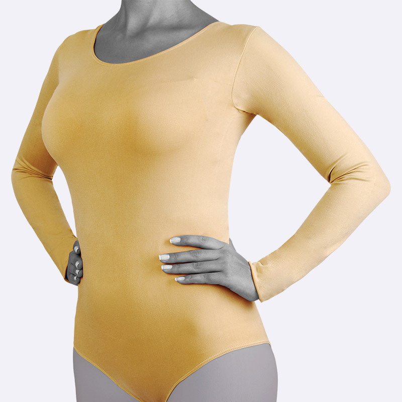 قطعة أساسية ضيقة بكم طويل وقصة بدي (Bodysuit) من الأسفل، ورقبة دائرية واسعة، مناسبة للارتداء تحت الملابس أو كقطعة رياضية
