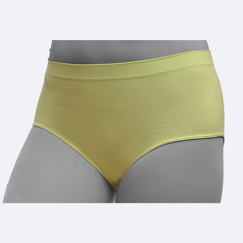 سروال داخلي نسائي بتغطية كاملة وخصر مرتفع قليلًا، يتميز بخامة مريحة بدون درزات مزينة بنقشة موردة خفية، ومناسب للارتداء اليومي.