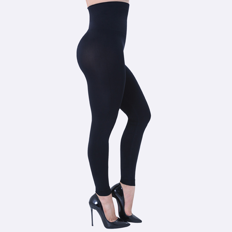 بنطلون نسائي طويل ضيق (ليجنز) باللون الأسود، يتميز بـ خصر مرتفع جدًا (High-Waist)، وهو مصمم ليعمل كمشد يشد منطقة البطن والخصر بفعالية ويحسن مظهر القوام.