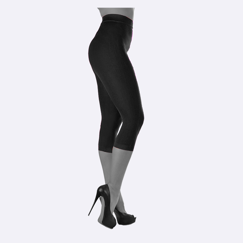 ليقنز أسود بخصر عالٍ، يصل طوله إلى منتصف الساق (تحت الركبة)، مثالي للارتداء اليومي أو لتمارين اللياقة الخفيفة