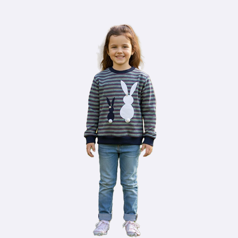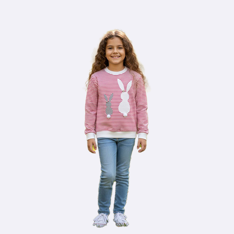 Girls' Striped Sweatshirt with Rabbit Appliqué