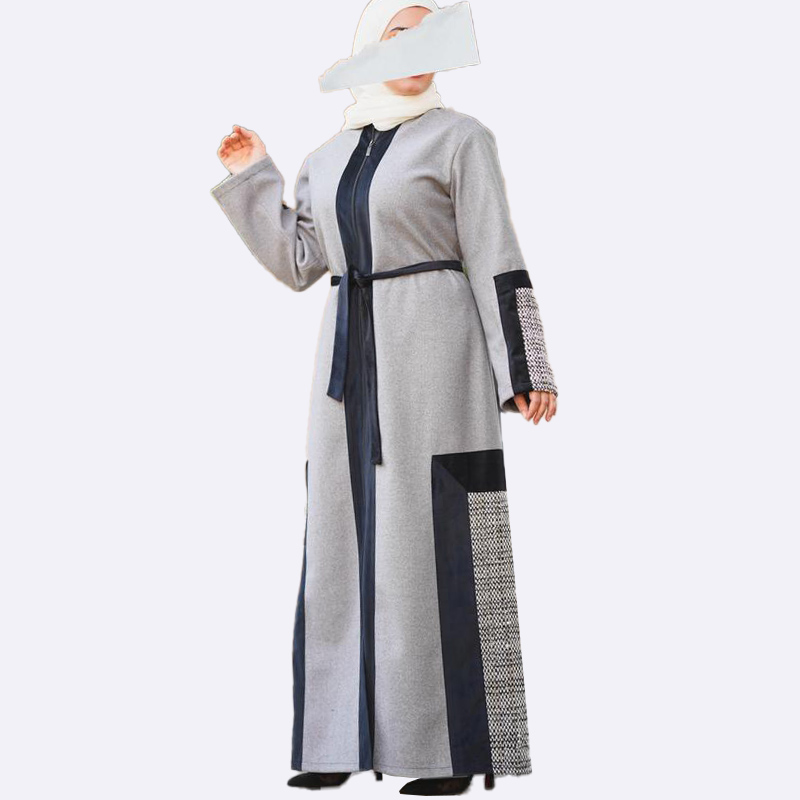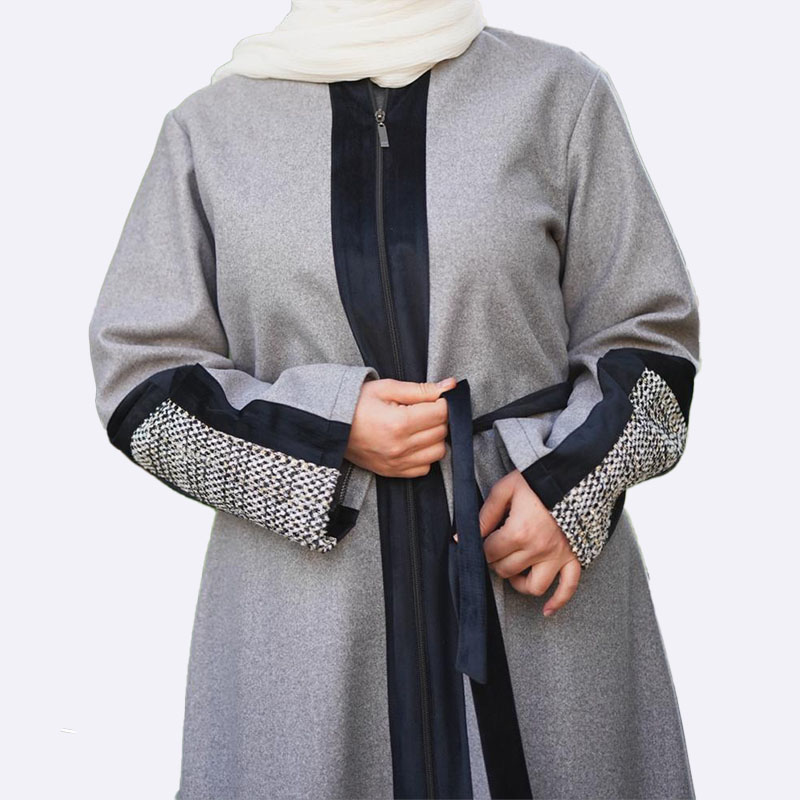Elegant Gray Abaya with Textured Accents