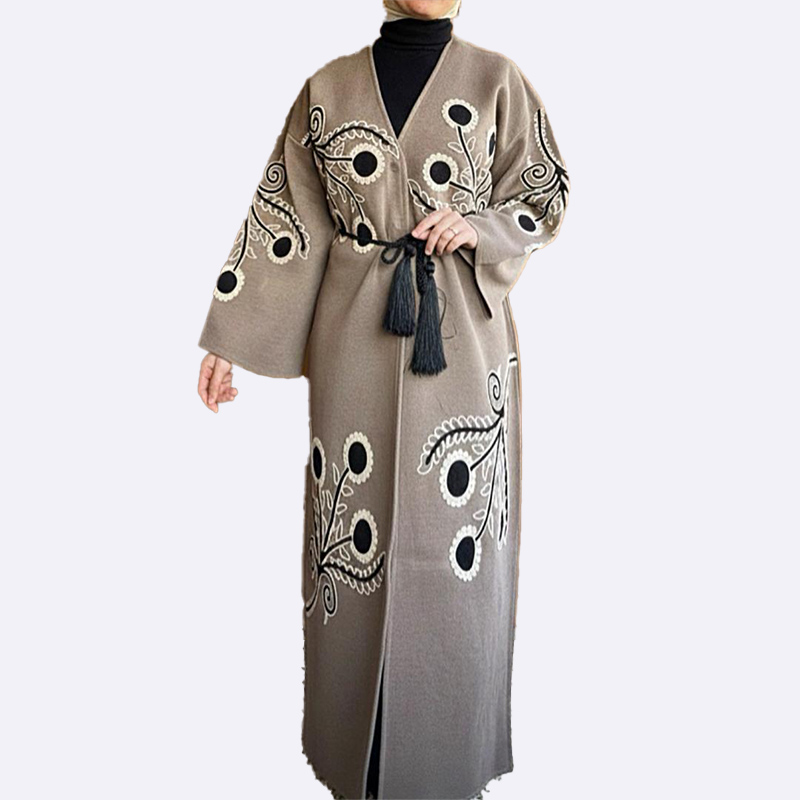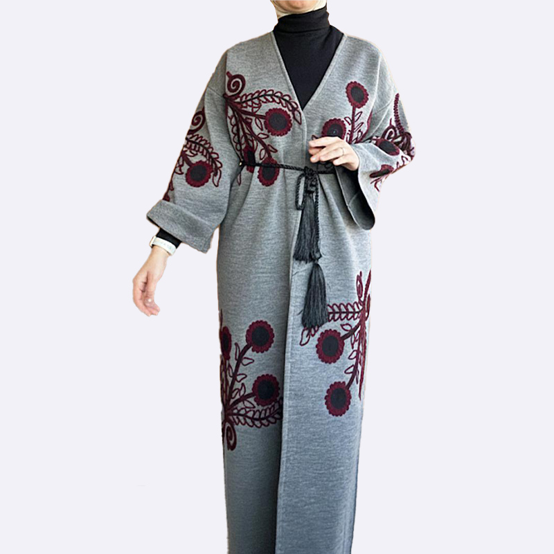 أضيفي لمسة من الأناقة إلى خزانة ملابسك مع هذا الكارديجان الطويل المطرز بالورود. تصميم فريد يجمع بين الراحة والأناقة، مثالي لإطلالة عصرية ومحتشمة.