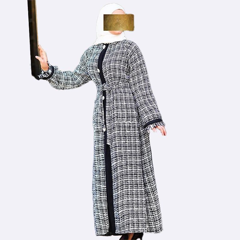 تألقي بأناقة مع هذه العباية المنسوجة بتصميم عصري وجذاب. تتميز بحزام أنيق لإبراز جمالك، وتضفي لمسة من الرقي على إطلالتك.