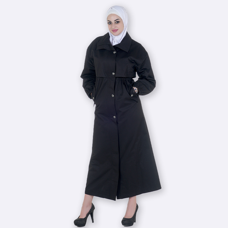 تألقي بأناقة مع هذا المعطف الماكسي الأسود، المصمم ليمنحك مظهراً محتشماً وعصرياً في آن واحد. مثالي لإطلالة أنيقة ومريحة في جميع مناسباتك.