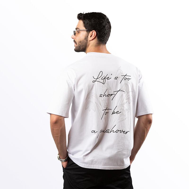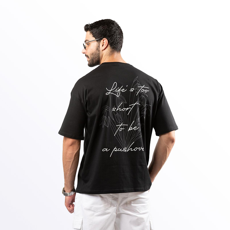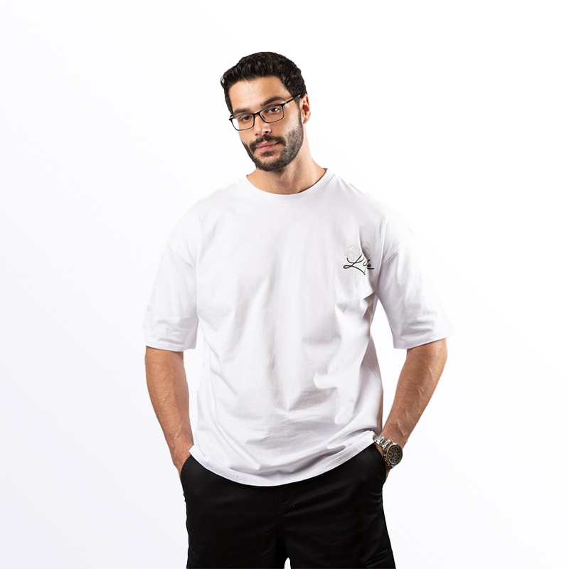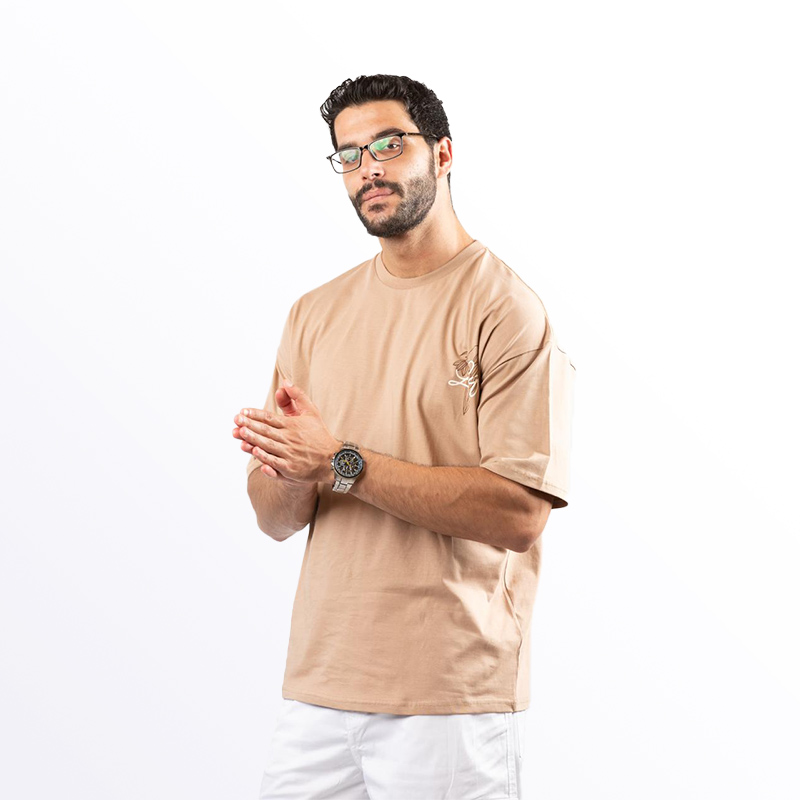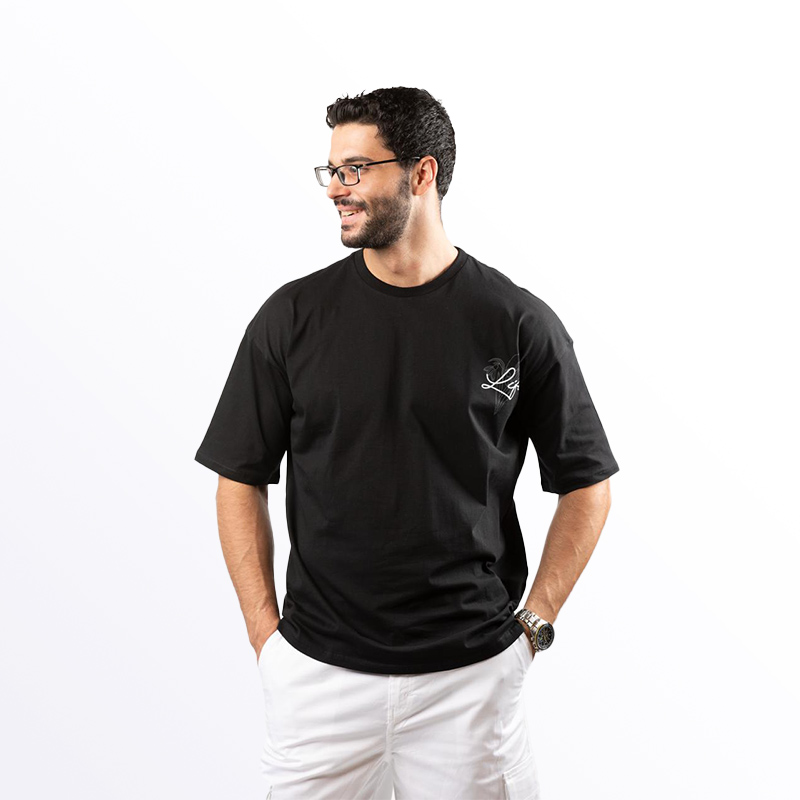 تي شيرت رجالي بقصة واسعة ومريحة (أوفر سايز)، يتميز بطبعة أنيقة على الظهر. يتوفر بألوان عصرية تشمل الأسود، السماوي، البيج الغامق، والأبيض، مما يجعله قطعة مميزة وعملية للإطلالات اليومية