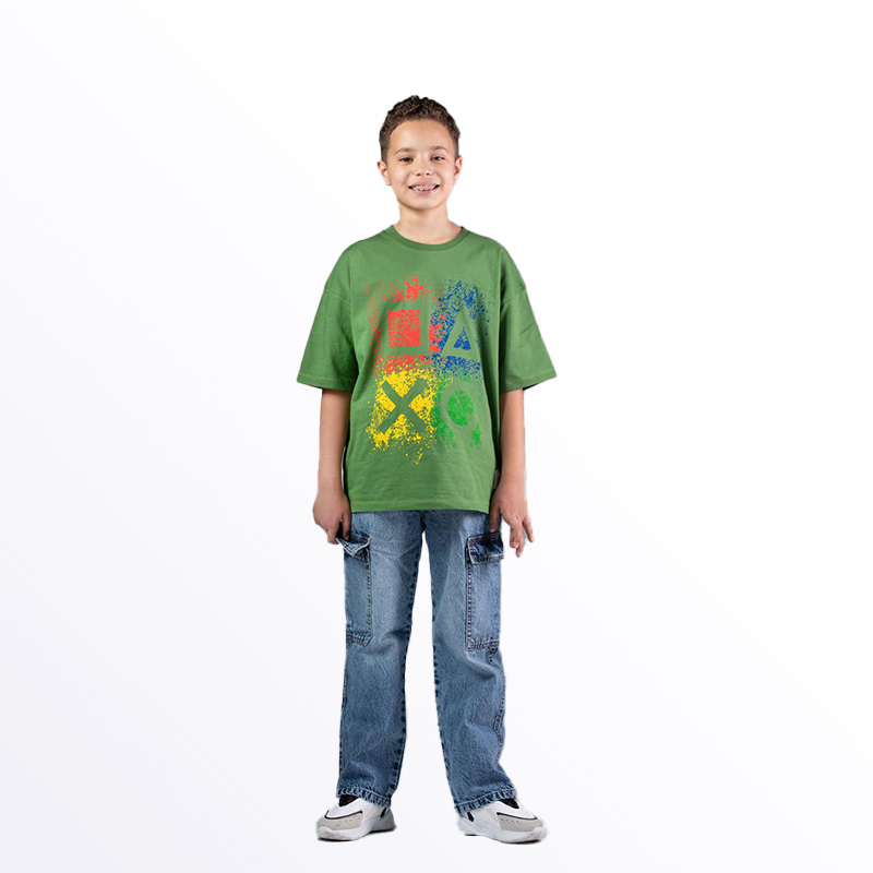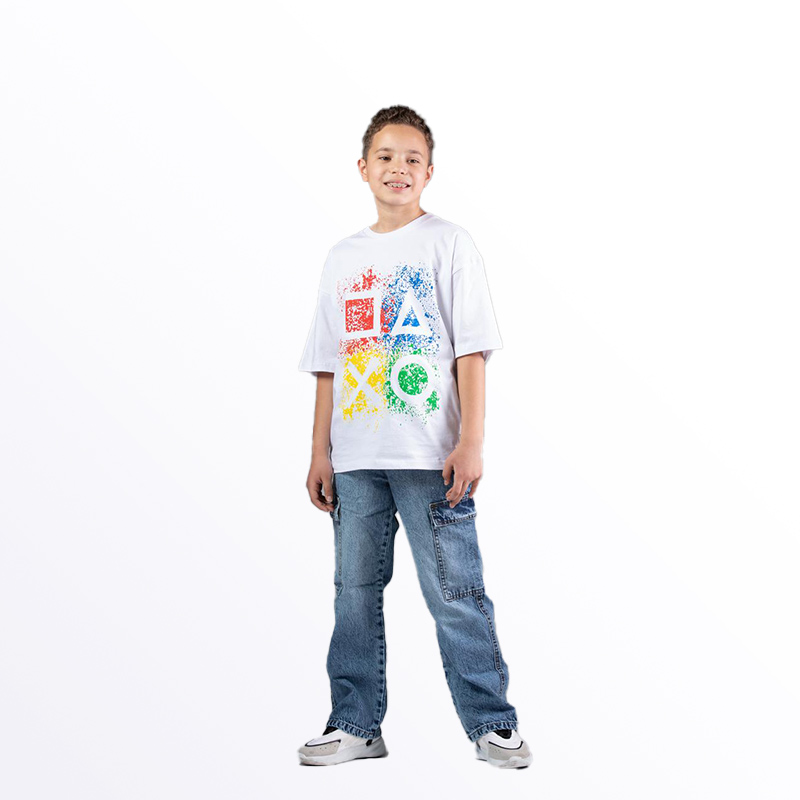 تي شيرت أطفال بتصميم عصري وقصة مريحة، يتميز بطبعة رسومات ملونة على الصدر. يتوفر بعدة ألوان جذابة مثل الأبيض، الأخضر، والتوتي، مما يجعله قطعة مميزة ومناسبة للأولاد والبنات.