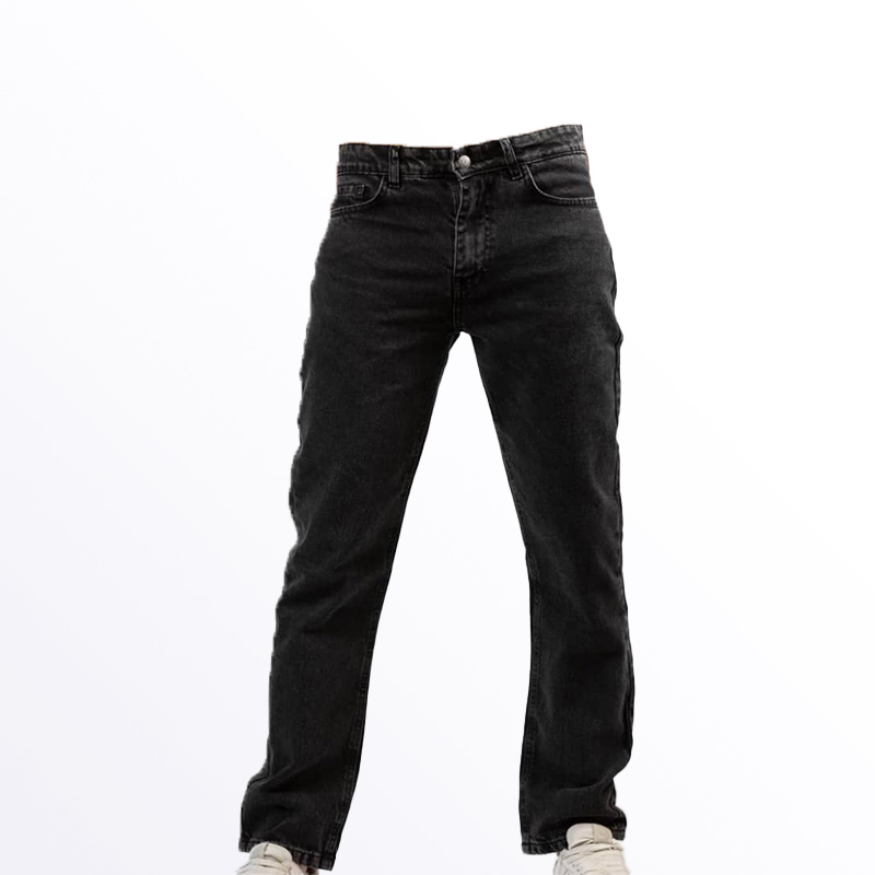 بنطال جينز رجالي باللون الأسود الداكن، بتصميم كلاسيكي بقصة مستقيمة. يتميز بقماش الدينم المريح، مما يجعله قطعة أساسية وعملية للإطلالات اليومية.