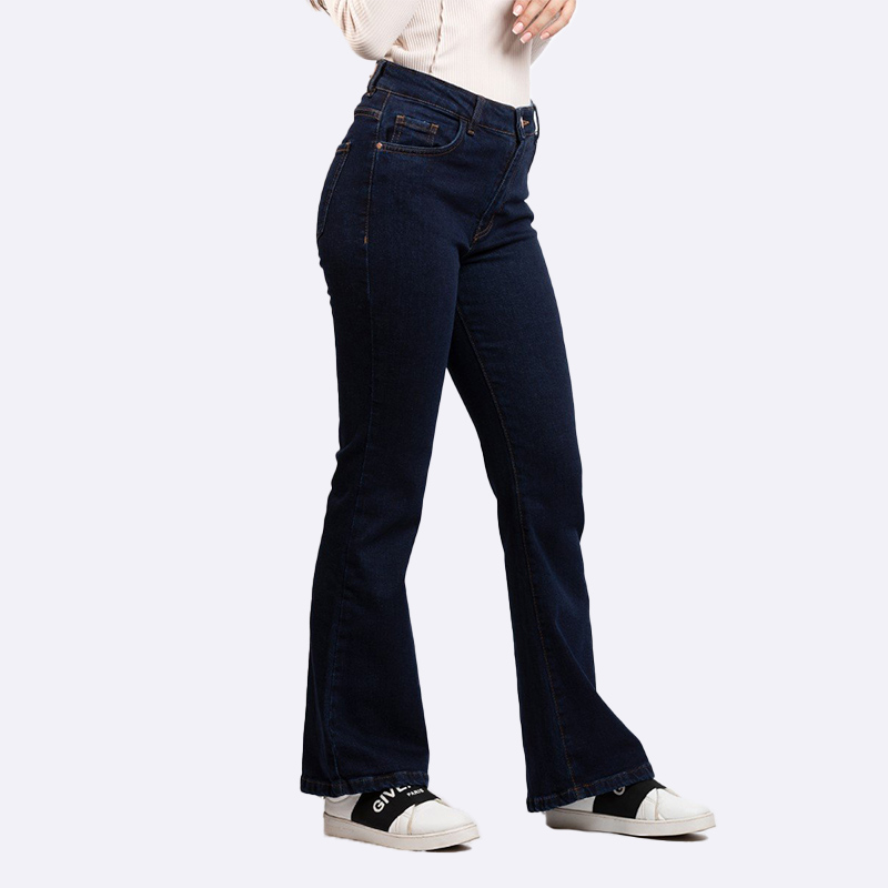 بنطلون جينز بقصة فلير عصرية بخصر مرتفع لإطلالة جذابة.