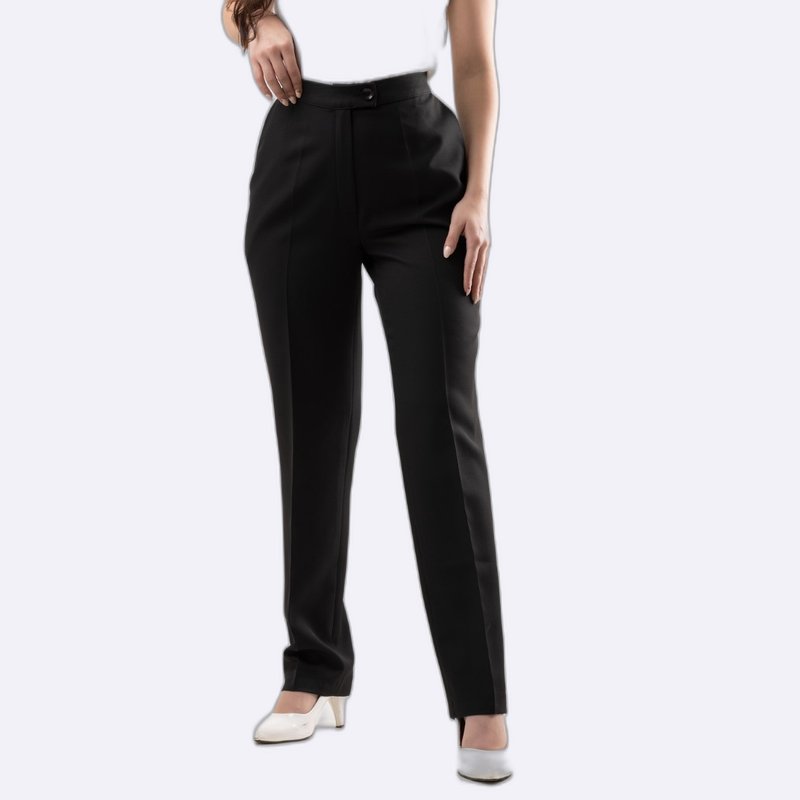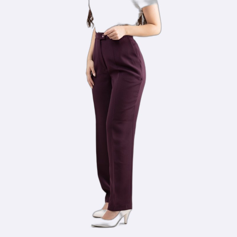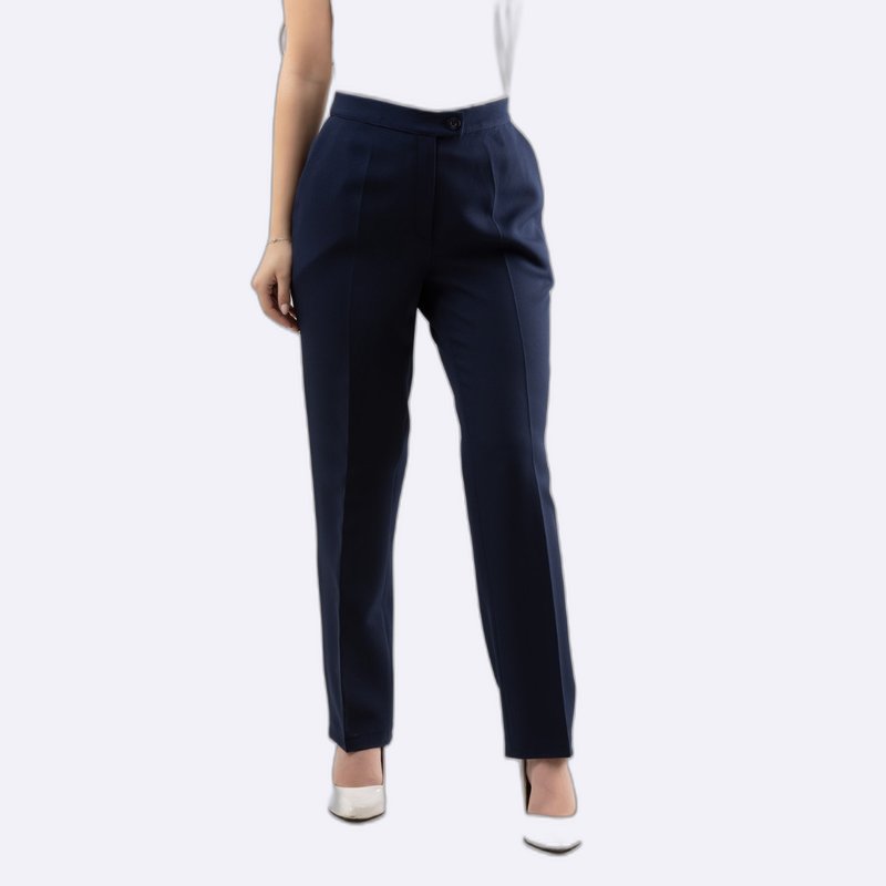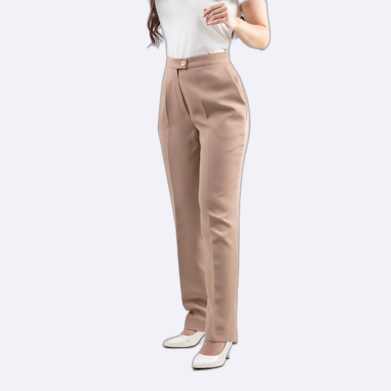 بنطلون رسمي بخصر مرتفع وتفاصيل ثنية أمامية، بقصة مستقيمة وضيقة قليلاً مثالي لإطلالات العمل.
