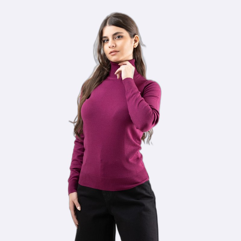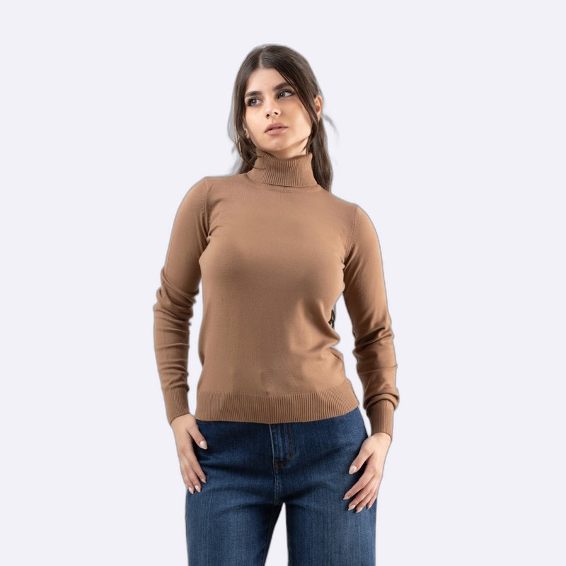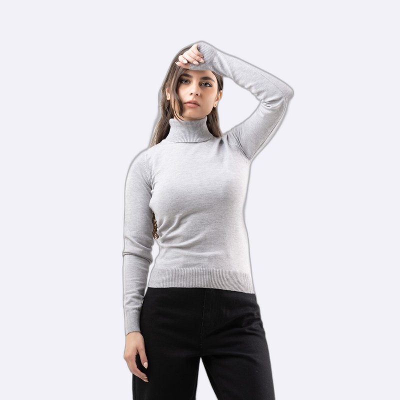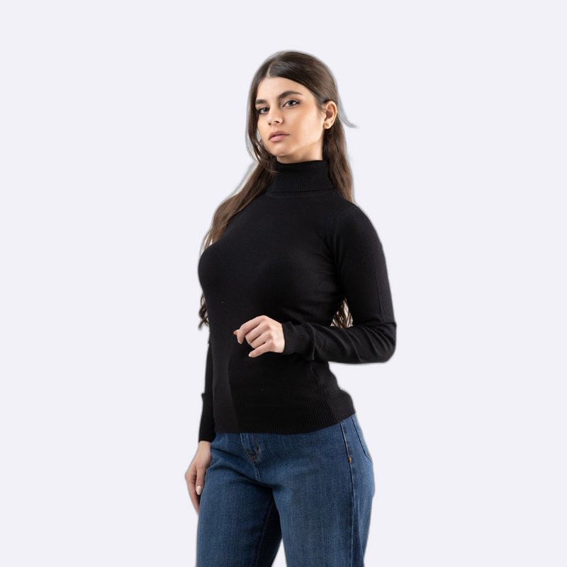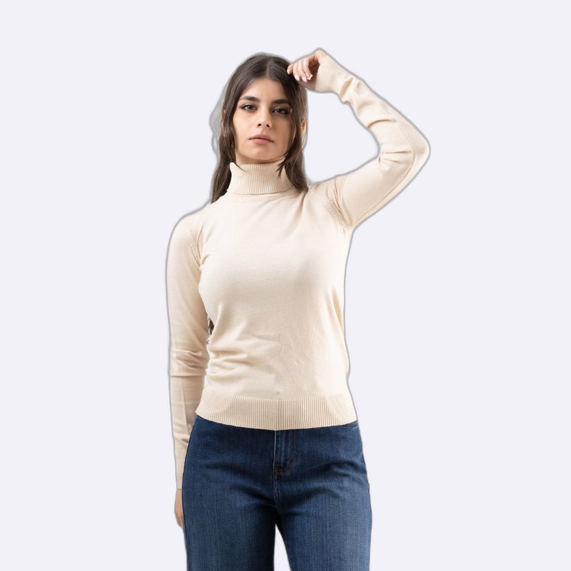 كنزة صوفية أساسية بياقة مدورة (Roll Neck) وأكمام طويلة، محبوكة بخيوط ناعمة بقصة ضيقة.