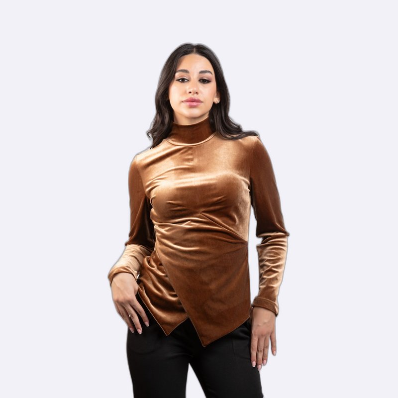 Women's Velvet Mock Neck Top with Draped Front
