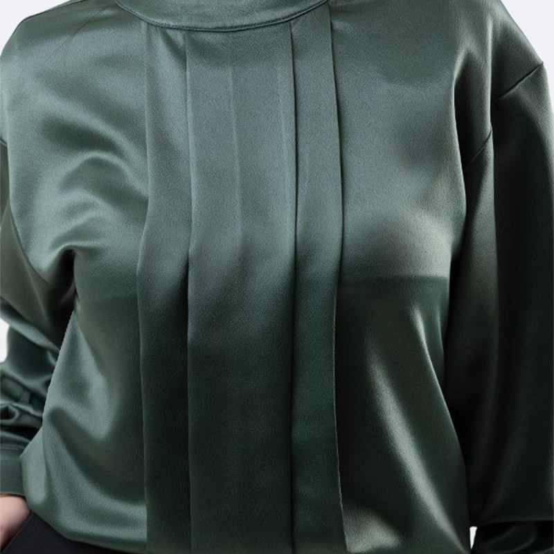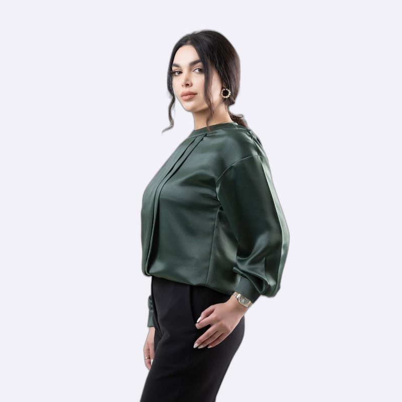 تألقي بإطلالة ساحرة مع بلوزة الساتان الزمردية الأنيقة. تصميم فريد يجمع بين الفخامة والراحة، مما يجعله خيارًا مثاليًا لكل مناسبة.