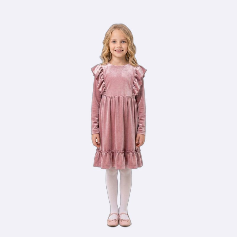 تألقي بإطلالة ساحرة مع هذا الفستان المخملي الأنيق. تصميم مكشكش وأكمام طويلة يضفي لمسة من الأناقة والجمال على أميرتك الصغيرة.