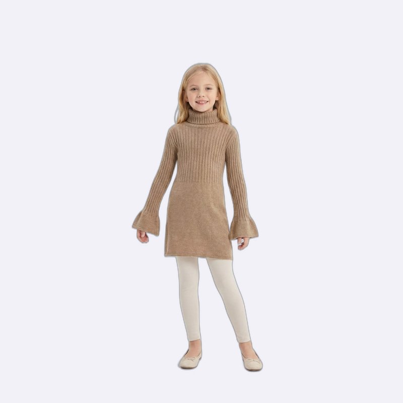 Girls' Chic Pink Turtleneck Sweater Dress with Ruffle Sleeves