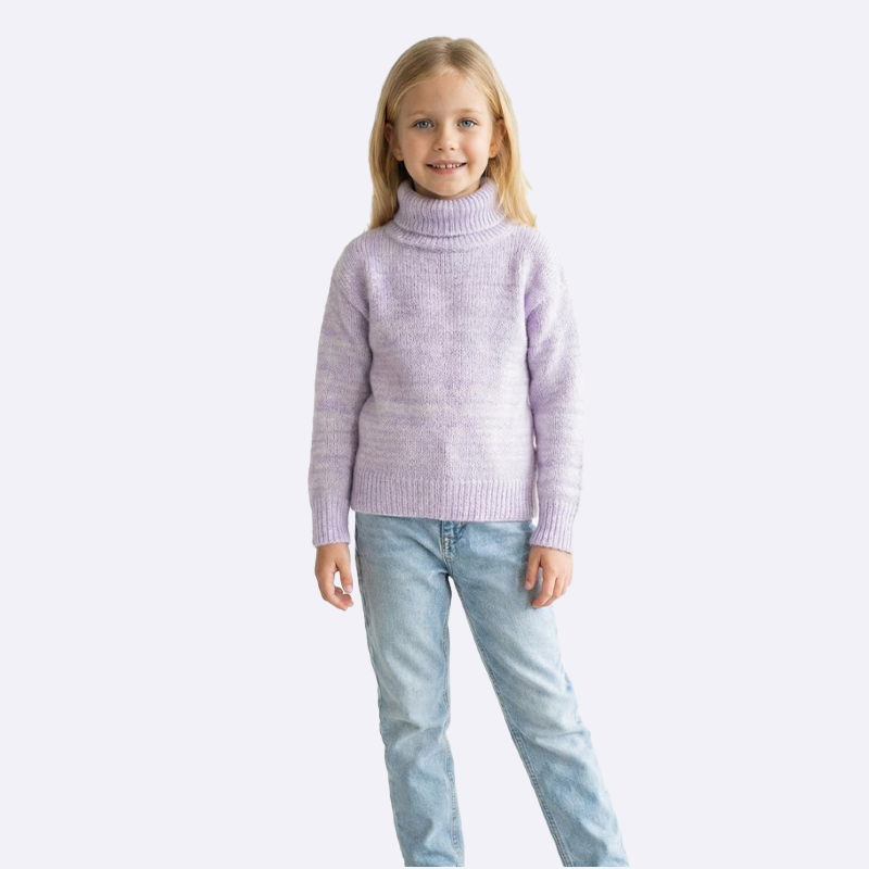 أضيفي لمسة من الأناقة إلى خزانة ملابس طفلتك مع هذه الكنزة الناعمة بلون الليلك. تصميم مريح وعصري يجعلها مثالية لأيام الشتاء الباردة.