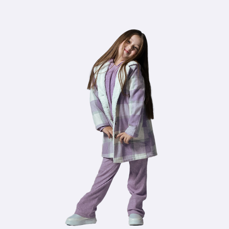 أضيفي لمسة من الأناقة إلى خزانة ملابس طفلتك مع هذا الجاكيت الكاروهات الوردي الأنيق. يتميز ببطانة شيربا ناعمة لتوفير الدفء والراحة في الأيام الباردة.