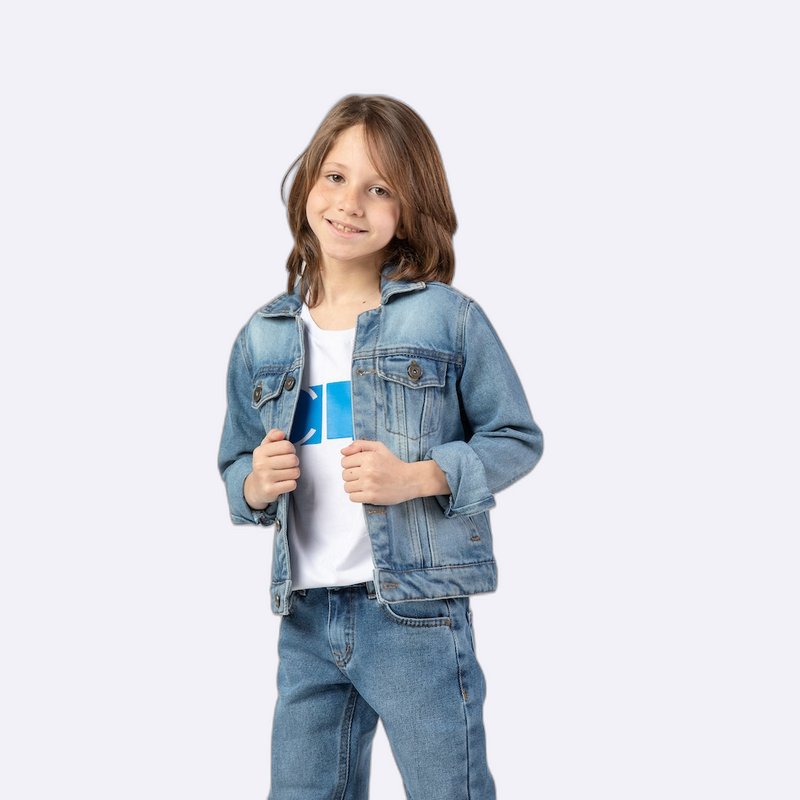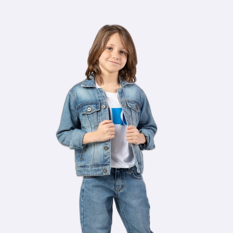 جاكيت دنيم عملي بياقة مطوية وأزرار معدنية أمامية مع جيوب صدر بقلاب وتفاصيل خياطة بارزة