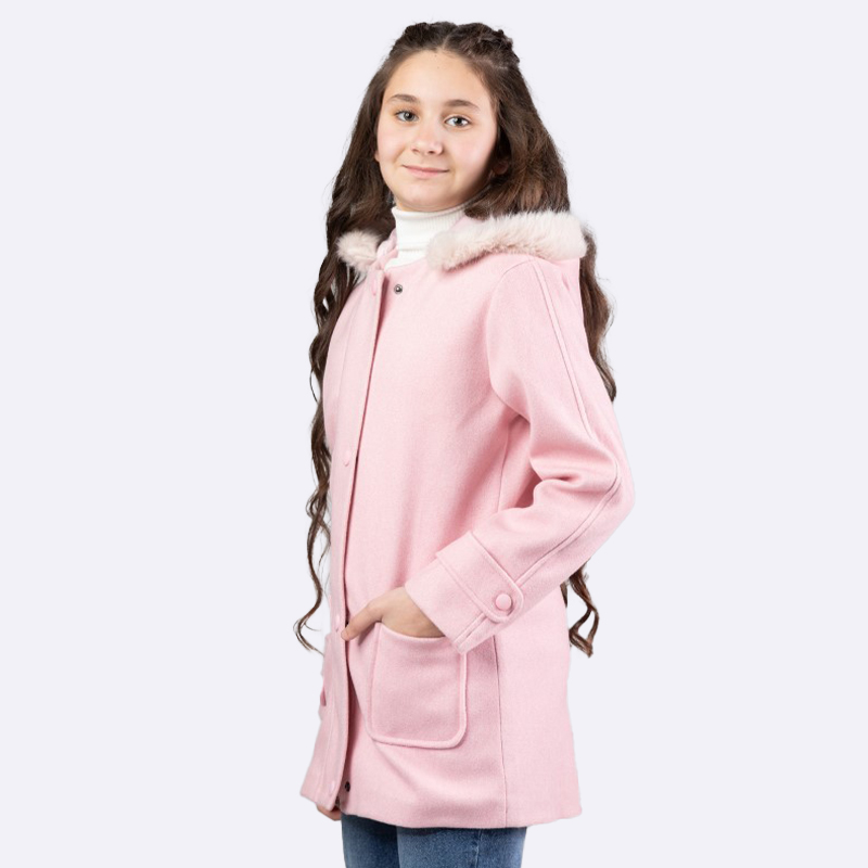 أضيفي لمسة من الأناقة إلى خزانة ملابس طفلتك مع هذا المعطف الوردي الجذاب. مصنوع من مزيج الصوف الناعم مع غطاء رأس من الفرو الصناعي، ليمنحها الدفء والراحة في الأيام الباردة.