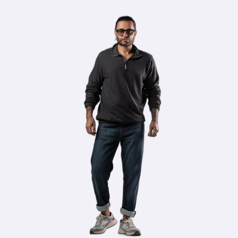 سويت شيرت بياقة مرتفعة ونصف سحاب بلون عنابي جذاب.