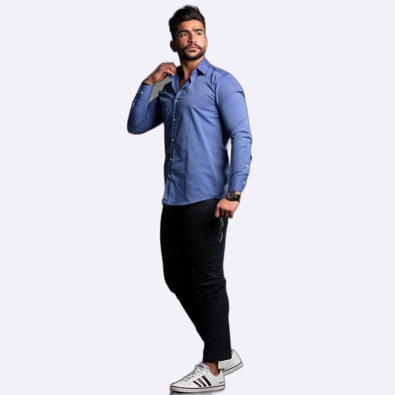 قميص كلاسيكي بأكمام طويلة وأزرار أمامية، يتميز بقصة متقنة وياقة ثابتة تناسب الإطلالات الرسمية والعملية.