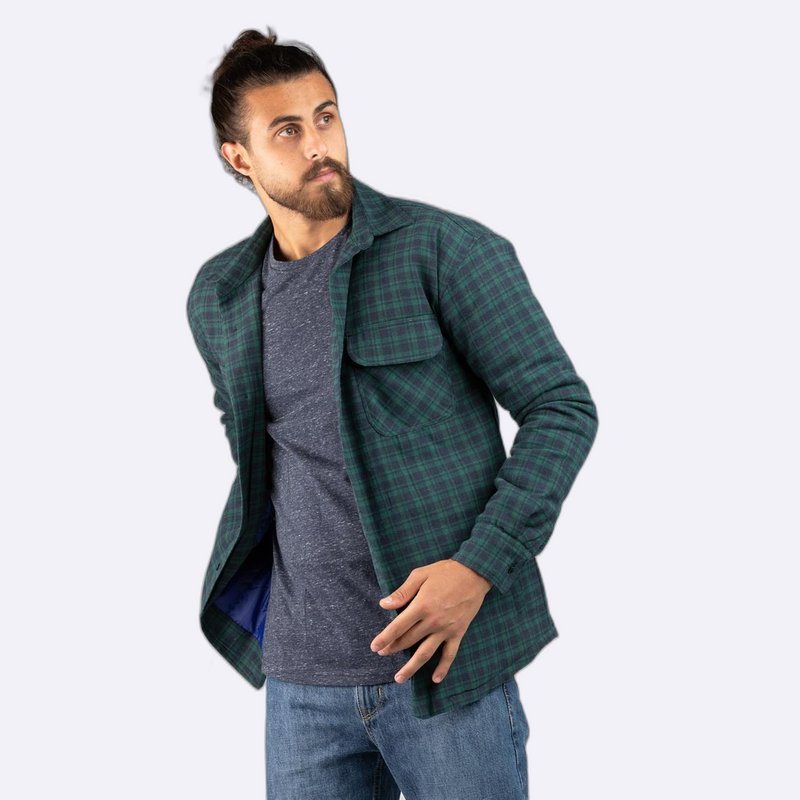 قميص شتوي دافئ بنقشة مربعات تقليدية، مزود بجيوب أمامية بأغطية وأزرار كاملة.