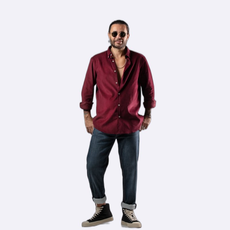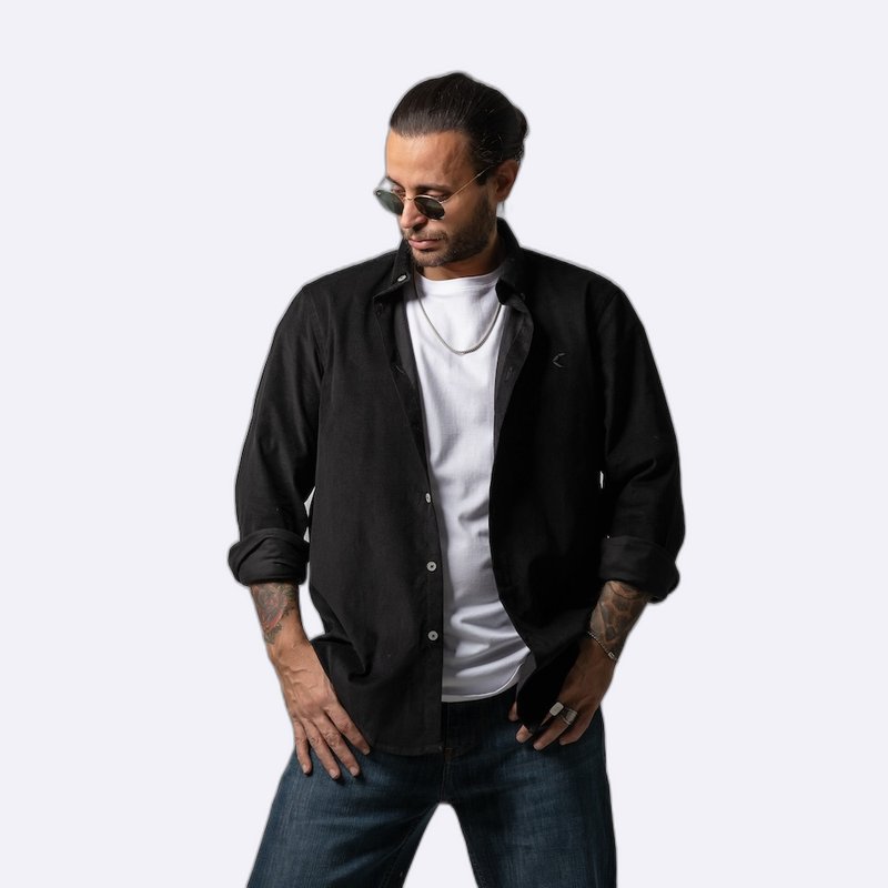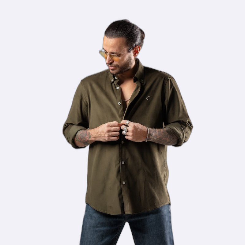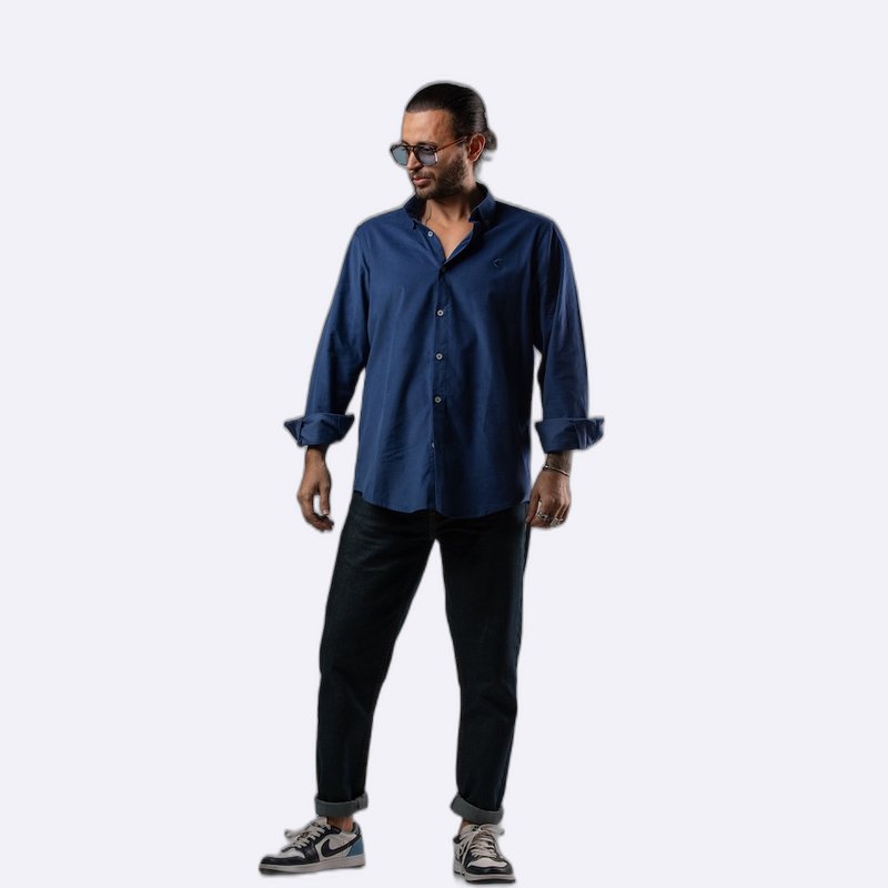 قميص كاجوال أنيق بأزرار أمامية كاملة وياقة مدببة، يتميز بقصة مريحة وشعار صغير مطرز على الصدر.