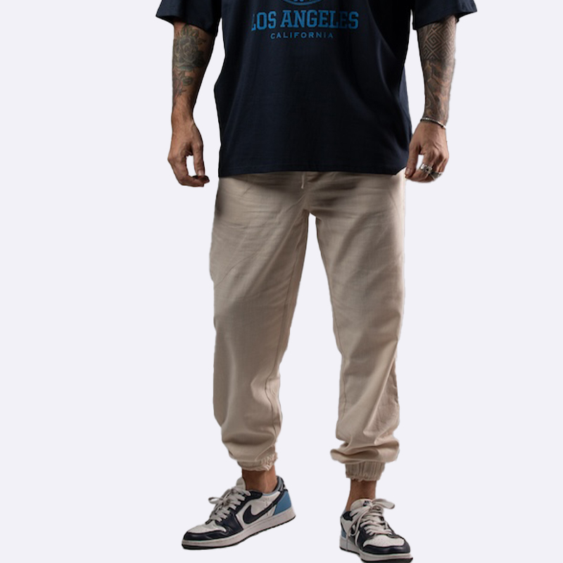 بنطال مريح وعملي يتميز بأطراف مطاطية عند الكاحل (جوجر) وقصة مريحة، مثالي للإطلالات الشبابية العصرية والأنشطة اليومية.