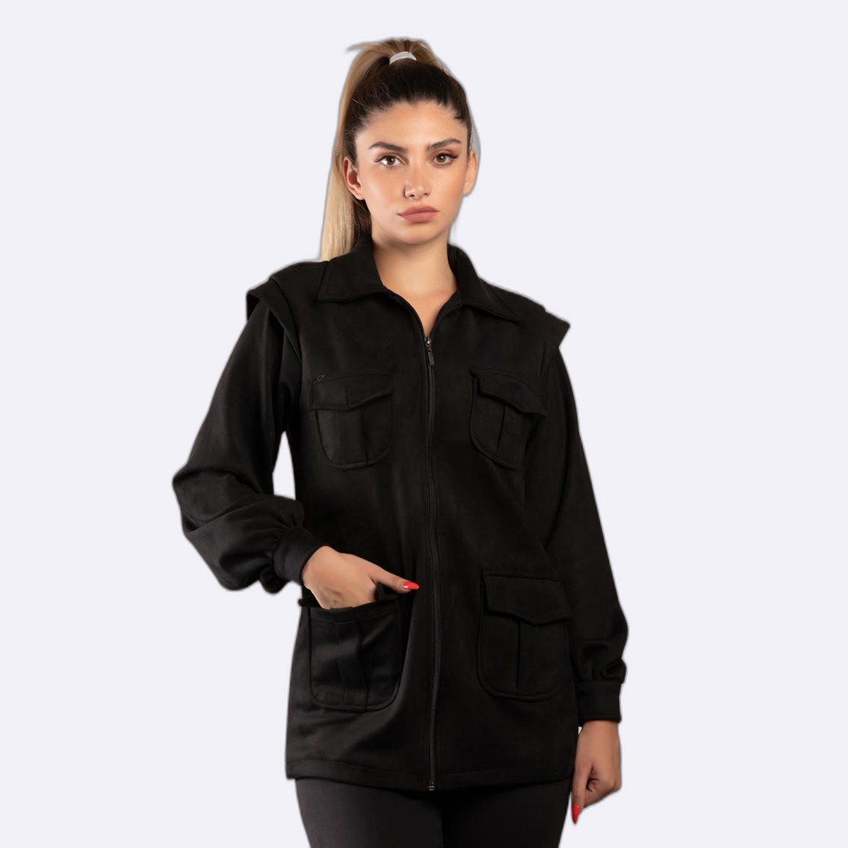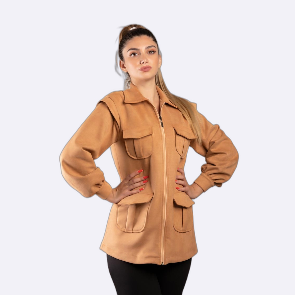 جاكيت عملي يغلق بسحاب أمامي ويتميز بأربعة جيوب أمامية بارزة وياقة قميص كلاسيكية.